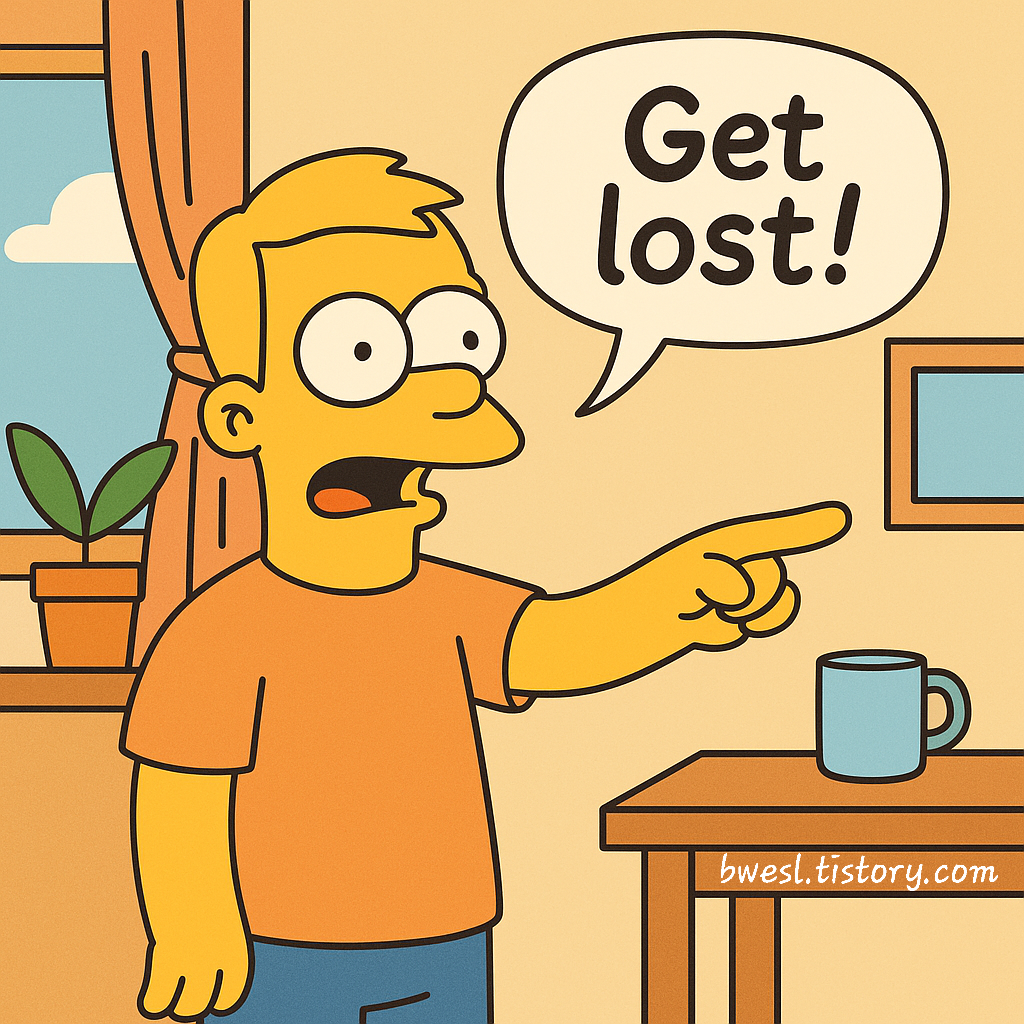 바로 ‘꺼져!’의 영어 표현들에 대해 알아보죠. 😊 물론 실제로 누군가에게 이렇게 말하면 분위기 싸해질수 있으니까, 대상과 상황에 맞게 말해야겠죠ㅎ 좀 정중한 표현부터 무례한 어조까지 나눠서 정리해봤습니다.